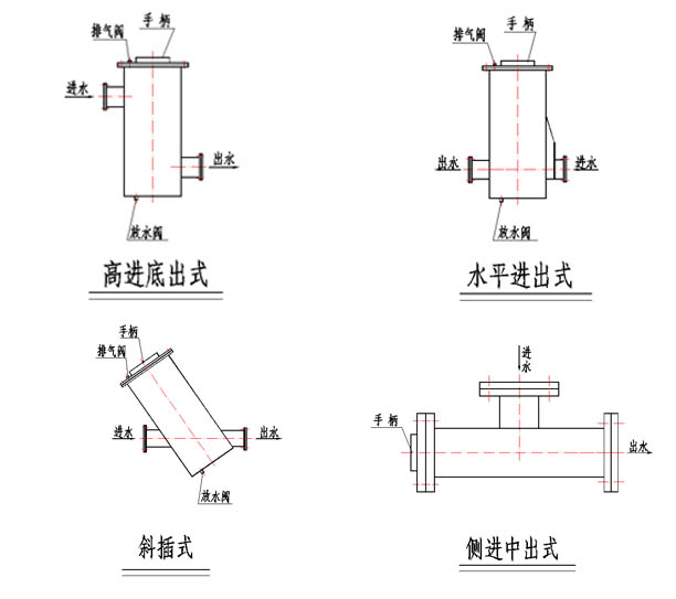 我們將根據(jù)客戶的現(xiàn)場尺寸及運行工況,在滿足通流比的情況下,為客戶量身定做不同形式的濾水器,如水平進出式、斜插式、高進低出式、側(cè)進中出式等。